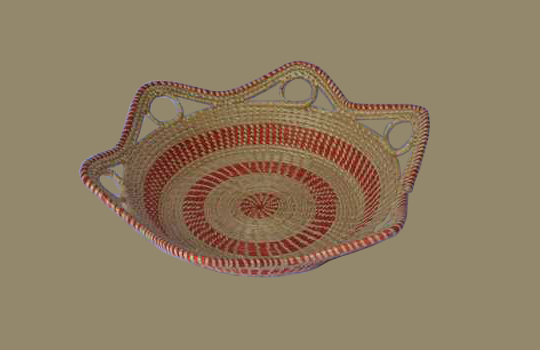The orange Sikki grass basket, with a 6-inch diameter, showcases exquisite craftsmanship. Handwoven from Sikki grass, it radiates warmth and rustic charm. Ideal for home decor or as a unique gift, its compact size adds versatility. This eco-friendly creation combines traditional artistry with a pop of vibrant color, making it both functional and aesthetically pleasing