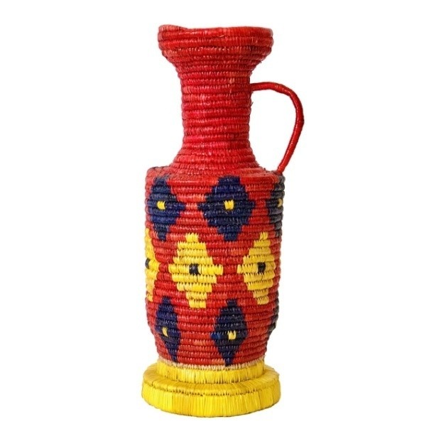 Introducing our exquisite Sikki Jug, meticulously handcrafted from natural Sikki Golden Grass and adorned with a captivating blend of pink, blue, and yellow shades.